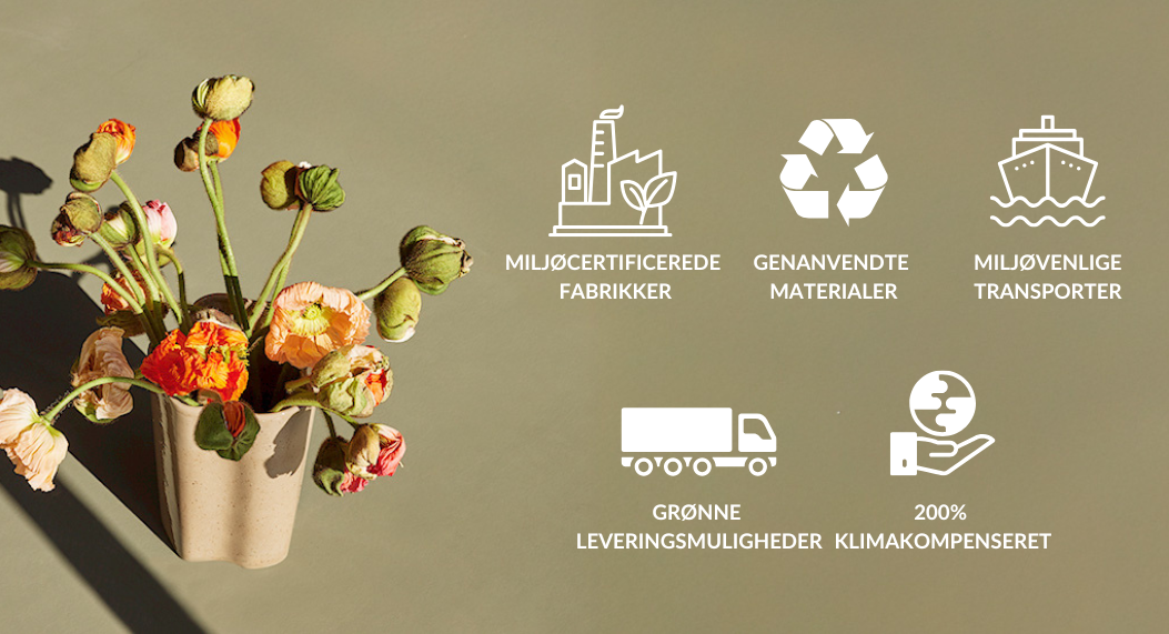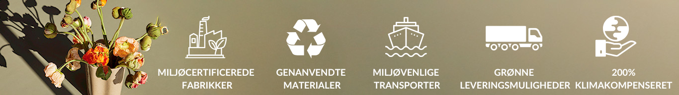 Fra begyndelsen har vi givet genbrugsmaterialer og vintage-møbler nyt liv i moderne form. I 2018 tog vi det næste skridt og begyndte at gennemgå hele vores værdikæde – fra materialer og produktion til transport – for at reducere påvirkningen på både klima og mennesker.