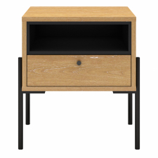 | Materiale: | Ben og håndtag er lavet af sort jern. Hylder og skuffer er fremstillet af MDF med eg-finer. |