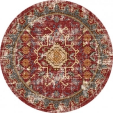 Rundt tæppe 'Idri' 200cm - Rød/Multi