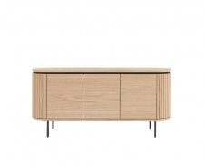 Fremstillet i slidstærk MDF og dækket i elegant egetræsfiner giver dette sideboard en varm, naturlig følelse, der harmonerer med skandinaviske indretningsstile. De sorte metalben skaber en effektfuld kontrast og bidrager til et moderne, industrielt præg – samtidig med at de giver møblet stabilitet og lethed.