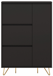 Materiale: Konstruktion og skuffer i sort MDF. Ben fremstillet i messing.