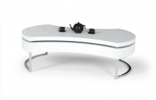 | Materiale: | Plade af lakeret MDF. Ben af kromat stål. |