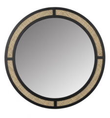 | Materiale: | Glas spejl med rattan dekoration. Sort pulverlakeret jernramme. |