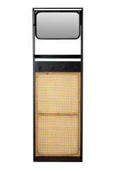| Materiale: | glas spejl på MDF-bagside. Sorte pulverlakerede tøjholdere af jern. Neutral rattan. , Sort pulverlakeret ram |