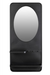 | Materiale: | Glas spejl fremstillet af sort pulverlakeret jern med tre hylder og rack. |