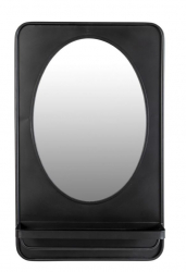 | Materiale: | Glas spejl fremstillet af sort pulverlakeret jern med hylde og rack. |