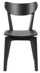 Denne spisebordsstol repræsenterer et moderne møbel, formet af en blanding af retro og moderne designelementer. Fremstillet i en sort lakeret finish med en fanersæde, tilbyder stolen en hverdagssolution for siddepladser, der passer ind i enhver spisestue.