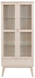 | Materiale: | Top og ram i lakeret egetræfiner og ben i massiv lakeret egetræ. Hærdet glas i døre og hylder. |